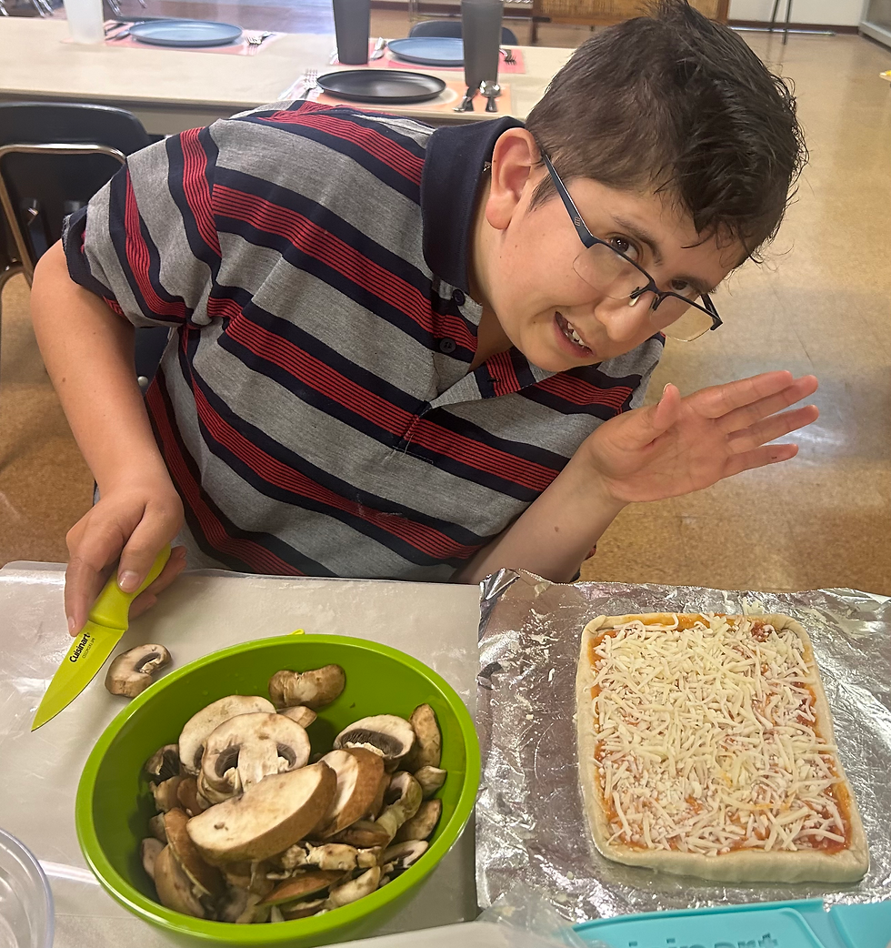 “The best pizza ever” could be overheard after making pizza dough from scratch, rolling out the dough and topping it with healthy ingredients. Think we’ll be ordering take-out pizza less and making our own more often!